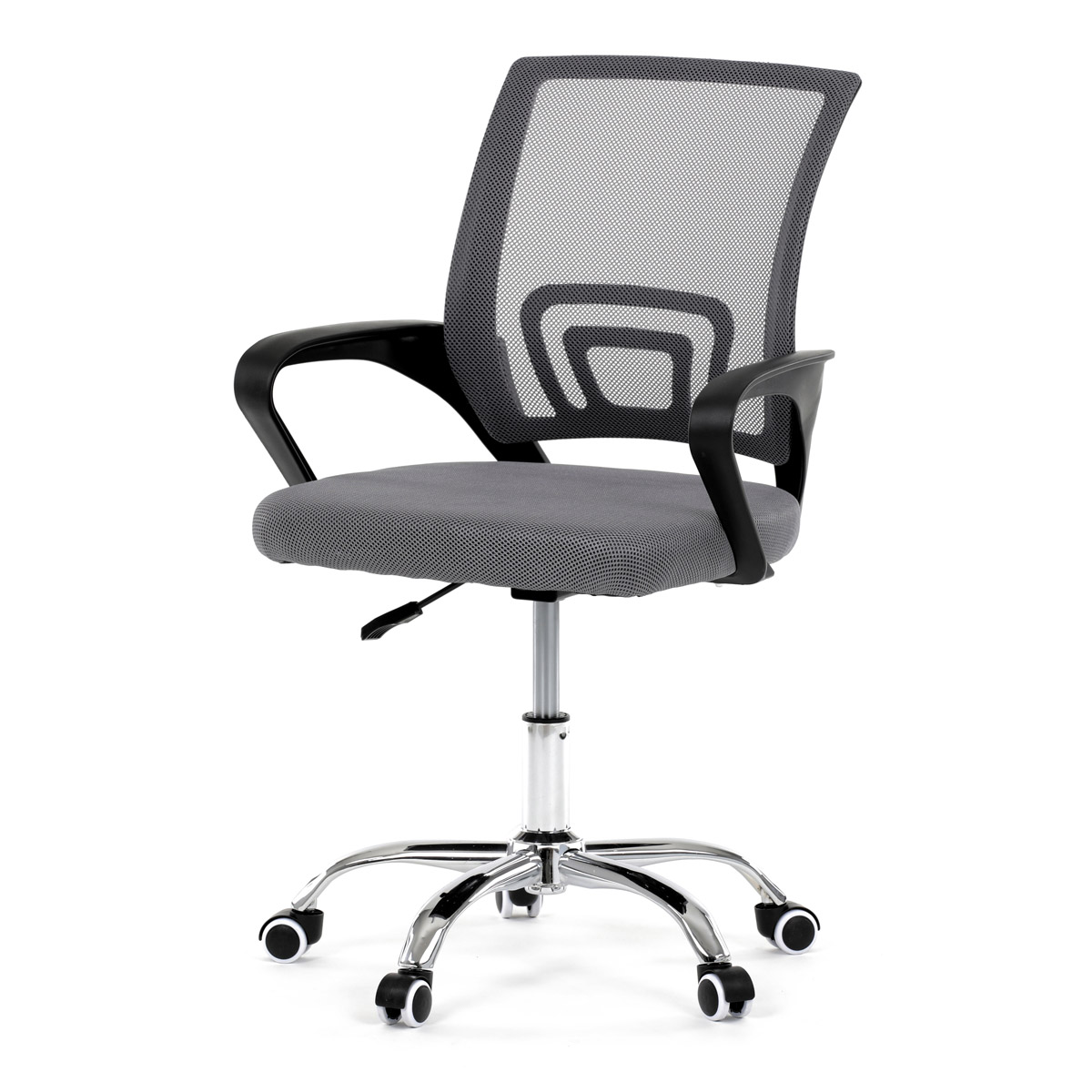 Židle kancelářská, šedý mesh, černý plast, chromový kříž