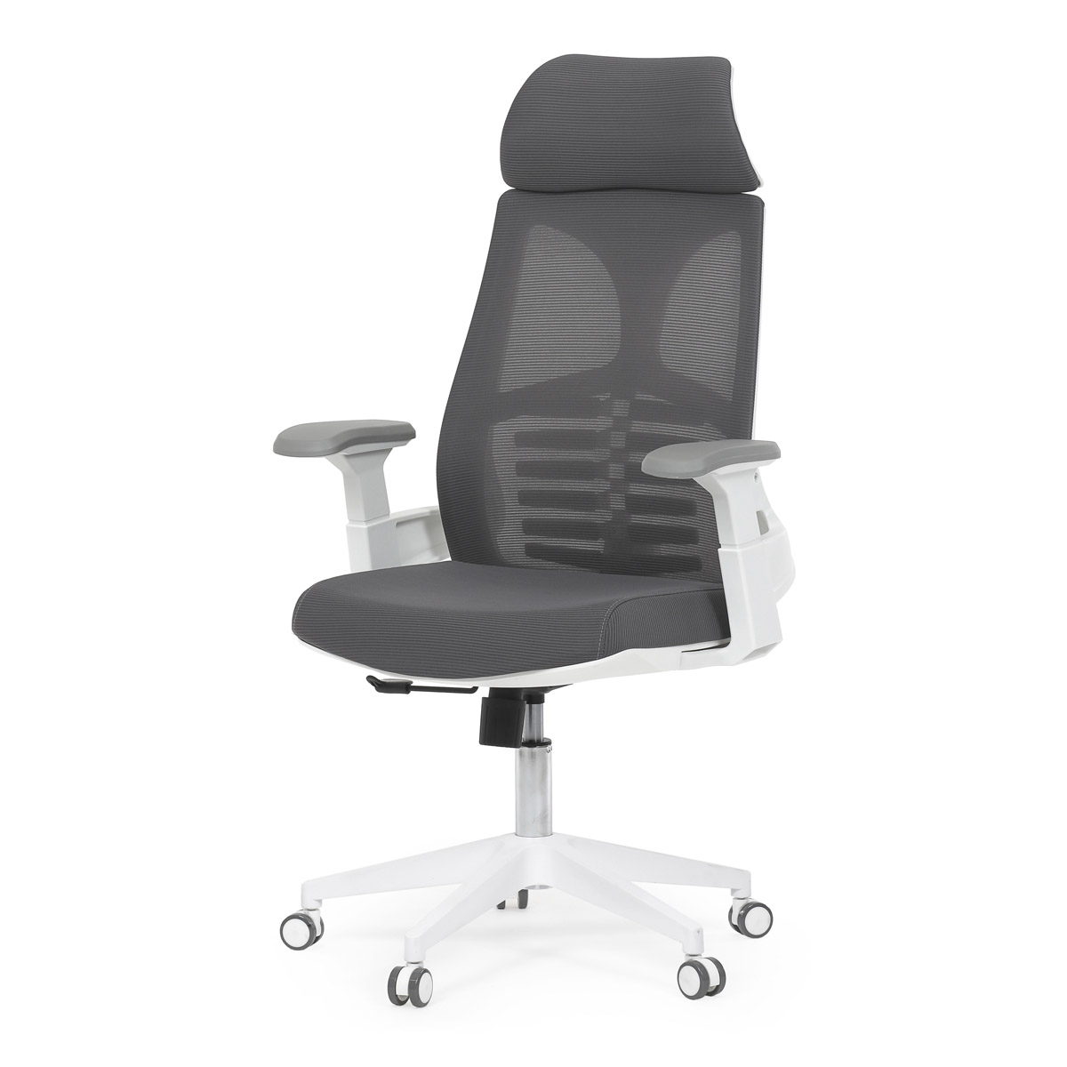 Židle kancelářská, tmavě šedá síťovina MESH, bílý plast, plastový kříž