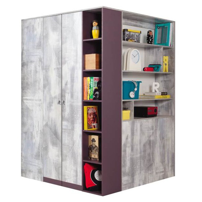 Šatní skříň ZM1 - Studentský/dětský pokoj Zoom patří mezi naše novinky. Tato kolekce vyniká svým moderním designem a funkčností. Obzvláště dvě rohové šatní skříně ZM1 a ZM2 prakticky řeší úložný prostor. Nábytek je vyroben z kvalitní laminátové dřevotřísky v netradiční barevné kombinaci Hong kong/lilková. Pokojíček si lze objednat jako celek, nebo jako jednotlivé díly. Zboží Vám dodáme v demontu s návodem na sestavení a kováním.
